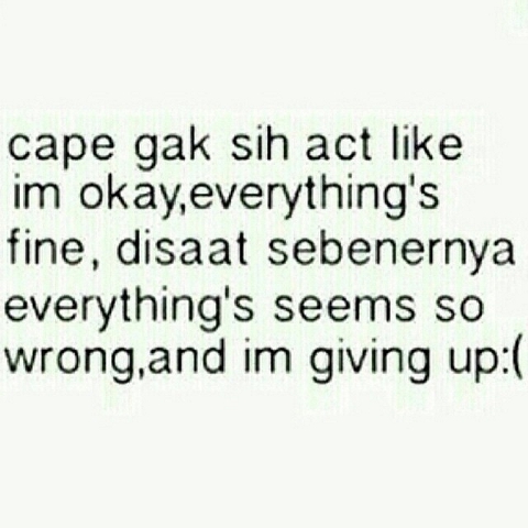 Capek gak sih act like im okay, everything's fine, disaat sebenernya everything's seems so wrong, and im giving up.